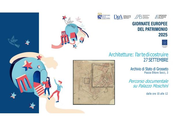 L’Archivio di Stato di Grosseto partecipa alle Giornate Europee del Patrimonio 2025 a tema “Architetture: l’arte di costruire”, proponendo per sabato 27 settembre 2025 un percorso documentale incentrato sull’interessante materiale storico relativo all’edificio che ospita l’Istituto, il settecentesco Palazzo Moschini.
